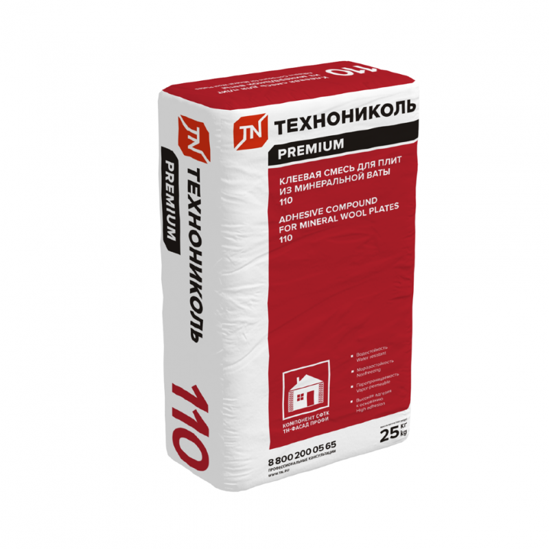 Применяется в системе теплоизоляции наружных стен зданий с тонким штукатурным слоем ТН – ФАСАД Профи. Предназначена для приклеивания плит из минеральной ваты к основанию. Содержимое мешка (25 кг) затворить 5,0 литрами чистой холодной воды. Перемешать до получение однородной массы с помощью строительного миксера, затем выдержать 5-10 минут и перемешать снова. Клеевая смесь ТЕХНОНИКОЛЬ 110 применяется в строительстве, ремонте и реконструкции зданий всех типов