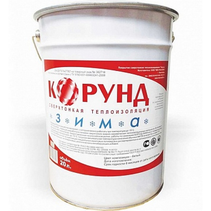 КОРУНД Зима - утеплитель, с которым можно работать до -20 °С. тогда как минимальная температура нанесения обычных ЖКТМ не может быть ниже +5 °С. Состоит из композиции специальных акриловых полимеров и диспергированных в ней микрогранул пеностекла, а также специальных добавок. Теперь «зимний спад» в строительстве Вам не страшен!