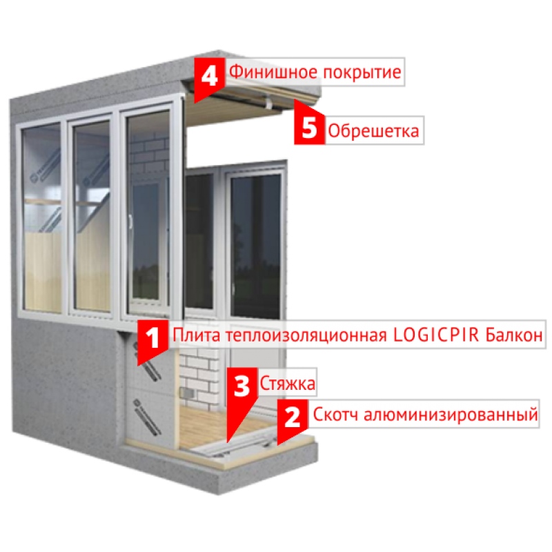 Отличная теплоизоляция зимой, надежная защита от жары летом. Минимальная толщина теплоизоляции LOGICPIR Балкон позволит увеличить комфортное пространство Вашей квартиры.