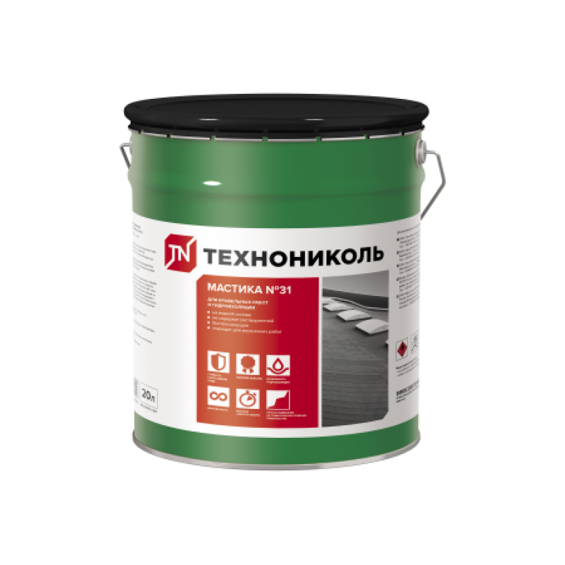 Мастика битумно-полимерная эмульсионная ТехноНИКОЛЬ №31 - это готовый к применению материал, являющийся водной эмульсией нефтяного битума модифицированного искусственным каучуком, технологических добавок и минеральных наполнителей. Покрытия на её основе обладают высокими: эластичностью, прочностью сцепления с основанием, теплостойкостью, устойчивостью к воздействию влаги.