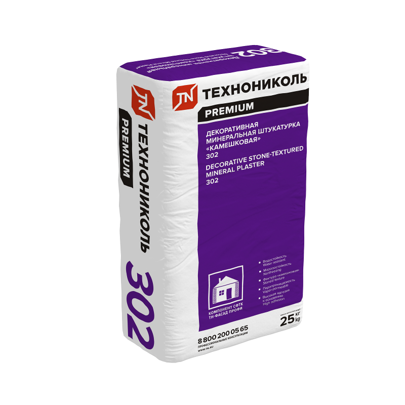 Содержимое мешка (25 кг) затворить 4 литрами чистой холодной воды. Перемешать до получение однородной массы с помощью строительного миксера, затем выдержать 5-10 минут и перемешать снова. Декоративная минеральная штукатурка «камешковая» ТЕХНОНИКОЛЬ 302 применяется в строительстве, ремонте и реконструкции зданий всех типов.