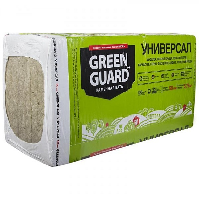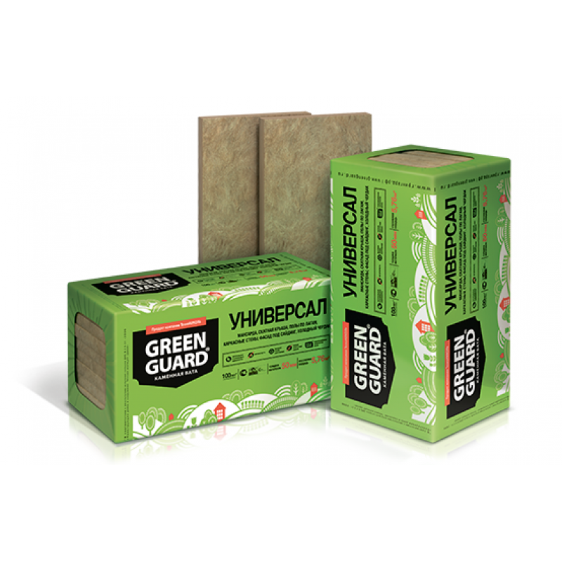 Минвата GreenGuard (Грин Гард) УНИВЕРСАЛ 50 - это теплоизоляционный материал, производимый из габбро-базальтовой породы, с органическими связующими и рассчитанный для частного строительства.