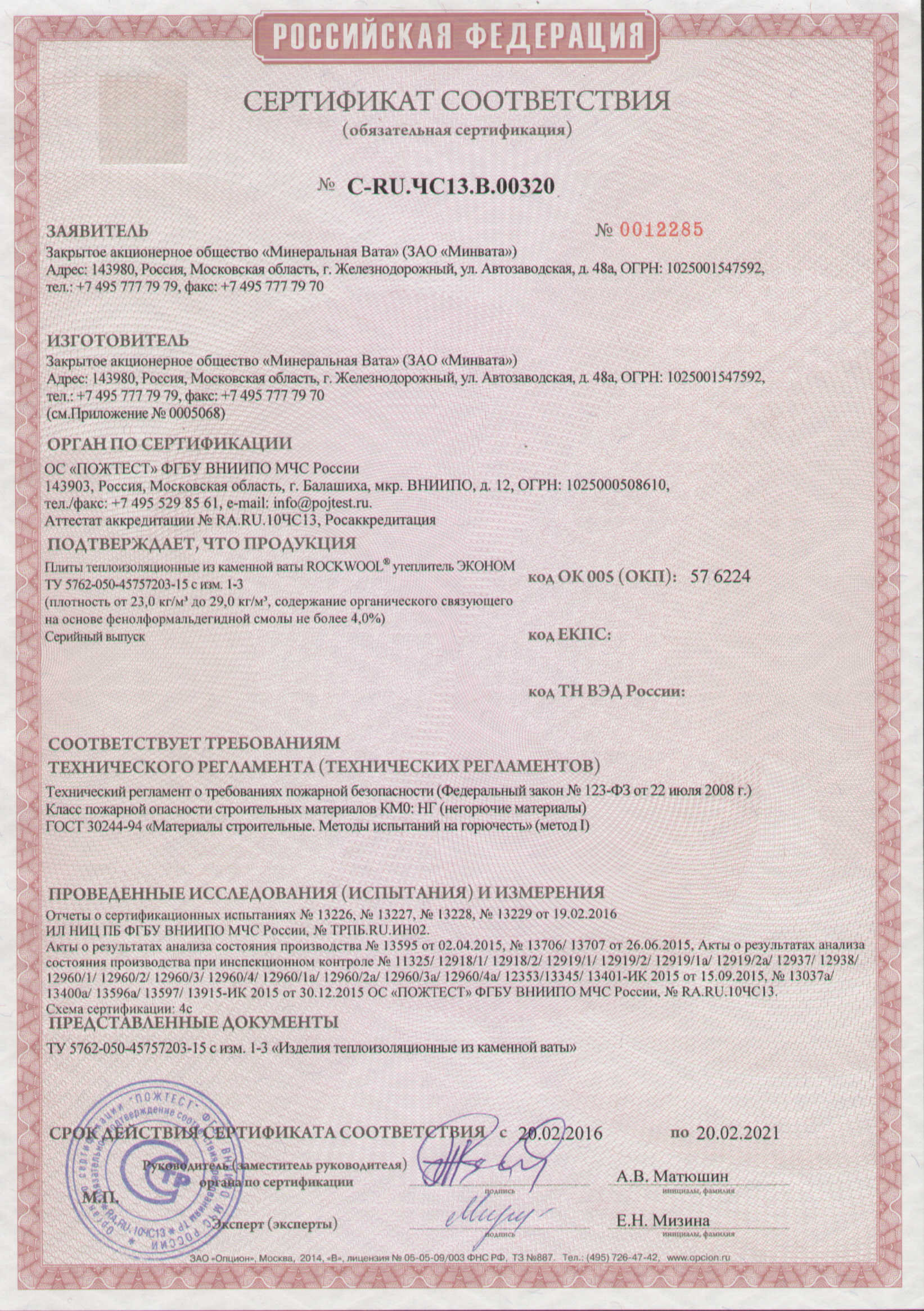 | Плотность, кг/м³ | 35-45 |
