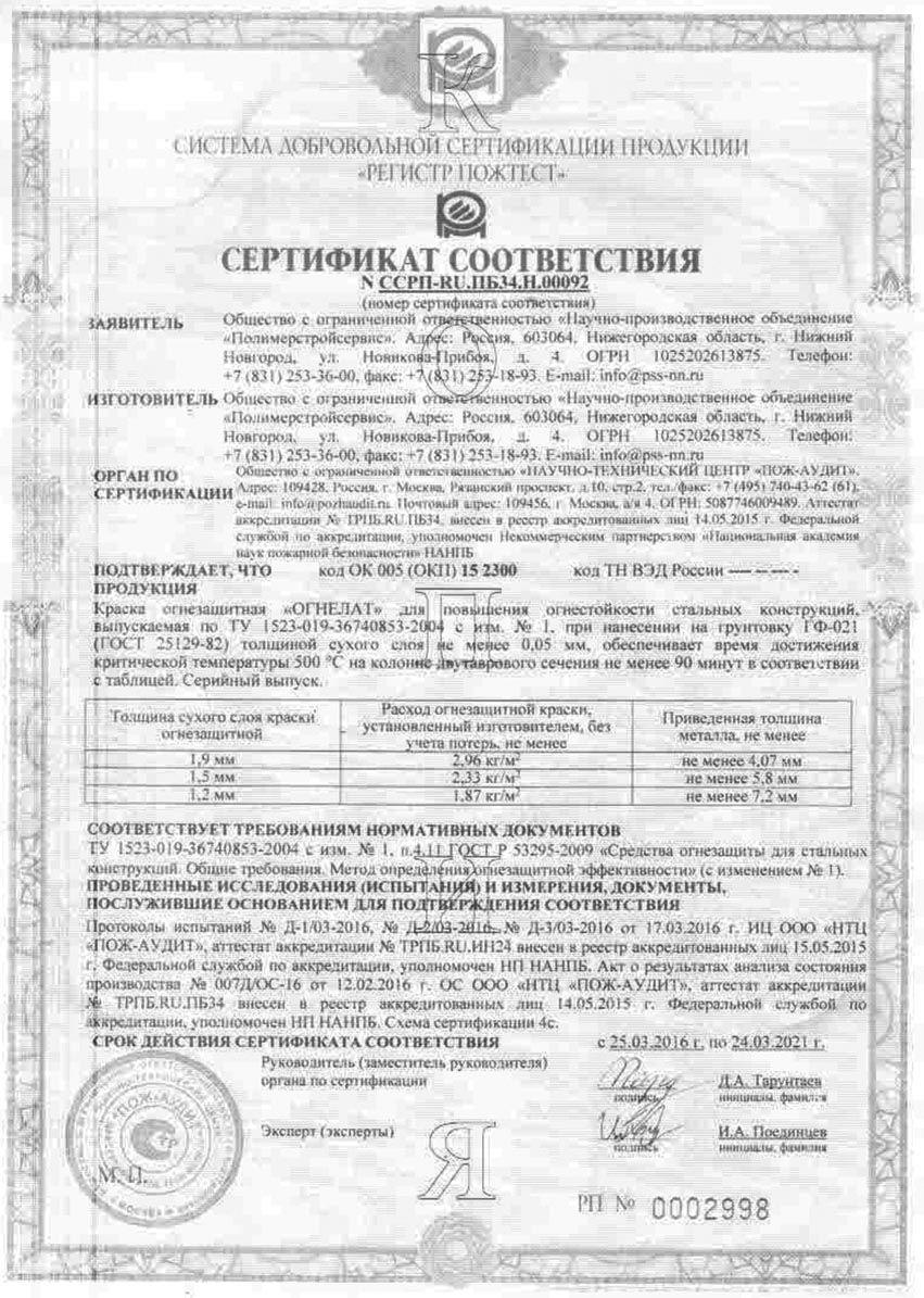ОГНЕЗАЩИТНАЯ КРАСКА «ОГНЕЛАТ» ТУ 1523-019-36740853-2004