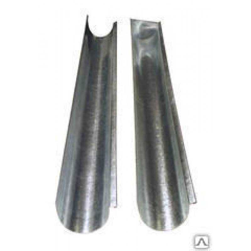 Изготовляется из оцинкованной стали толщиной 0,5 мм, длиной 1250 мм. Под заказ возможно изготовление меньшей длины. Представляет собой разрезанную вдоль водосточную трубу с загнутыми краями.